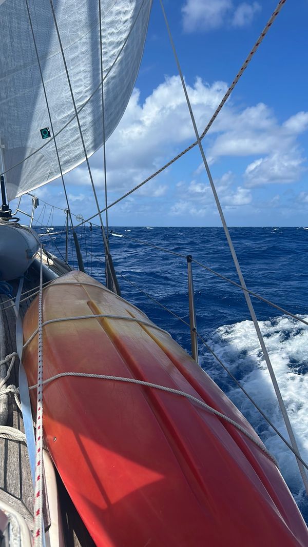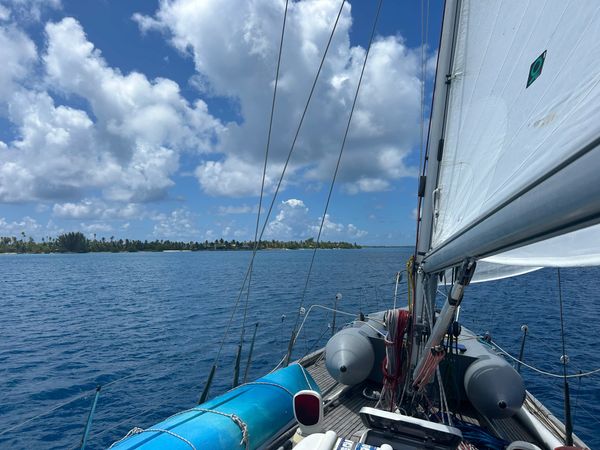 Sailing in the trade winds. Heding towards the Toamotu Atolls.
