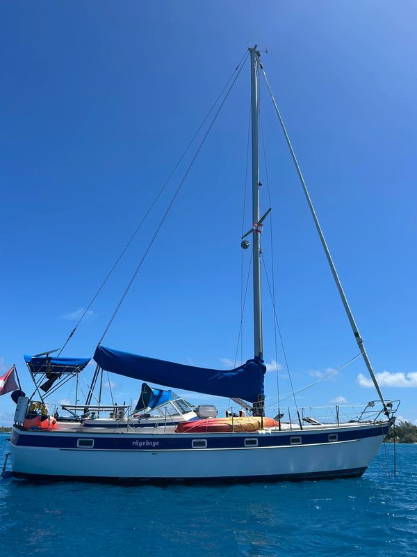 S/V Rägeboge at anchorage in Fakarava